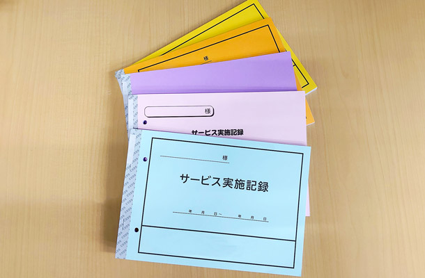 完全オリジナル/事業所名入りの日誌・実施記録をゼロから作成。専任のスタッフが、介護保険の改定内容についてもきちんと対応いたします。早い!使いやすい!安心!と大変ご好評いただいております。