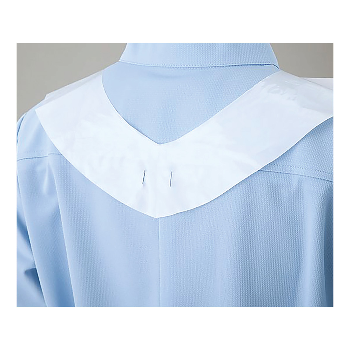 長さ・襟元調節可能で、ネック後方部と腰脇にはミシン目があるので前に引っ張るだけで容易に脱ぐことができます。