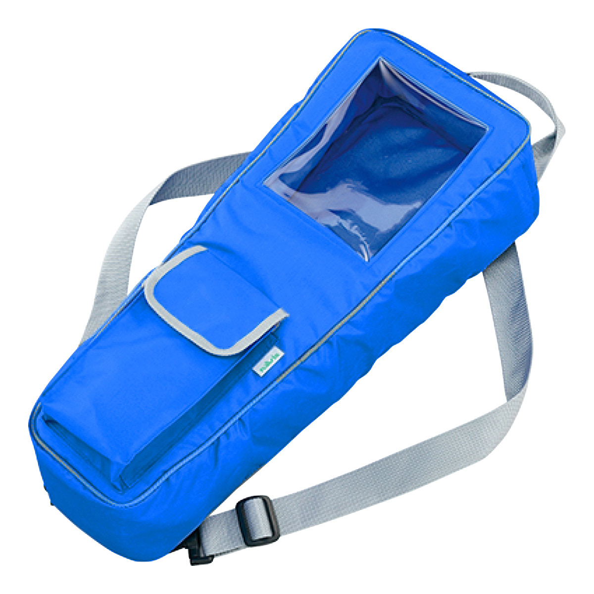 リュックタイプのため持ち運びに便利で、車椅子の手すりにかけて移動することも可能。