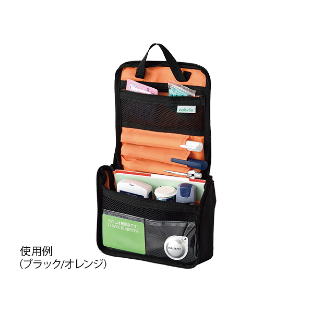 外出先での血糖測定やインシュリン注射に必要な道具を一つにまとめて収納できます。