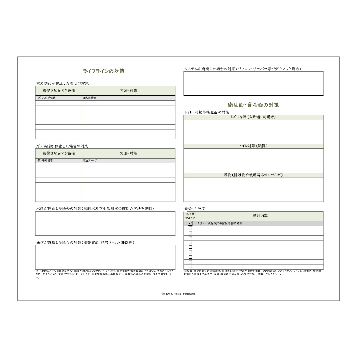 ⑦ライフライン・衛生面・資金面の対策