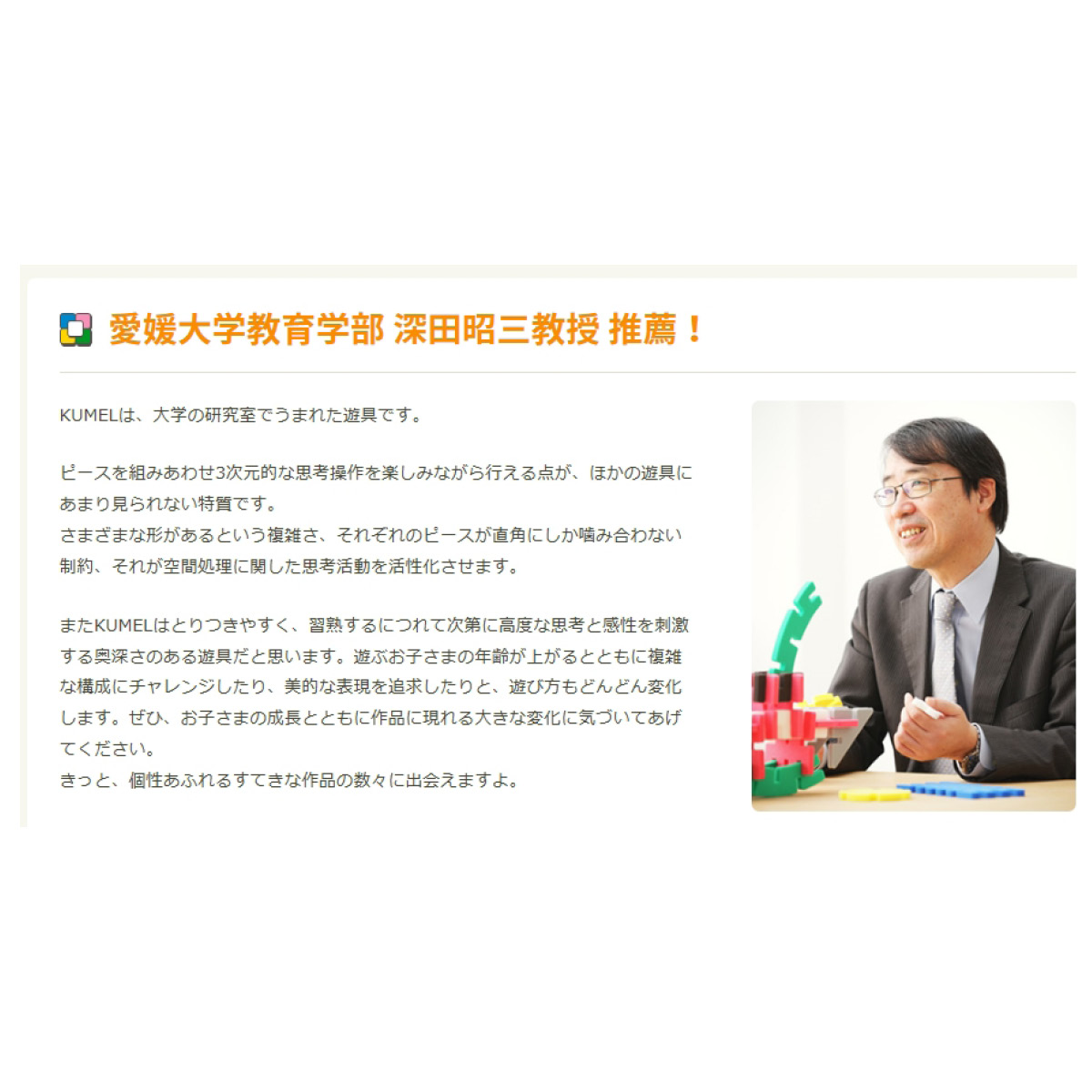 ポリエチレンフォームだから軽くて水に強く、角も丸く加工してあるので小さなお子さまにも安心して遊んでいただけます。カラフルで独創的な形状のピースは、イマジネーションを刺激して脳を活性化させ想像力・集中力を鍛えることができます。