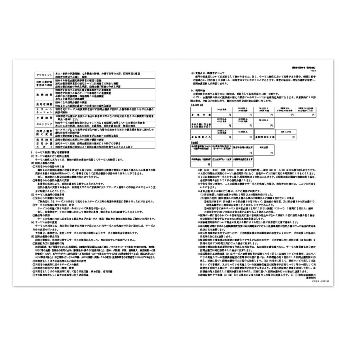 A3、4枚の充実した重要事項説明書です。訪問介護用です。