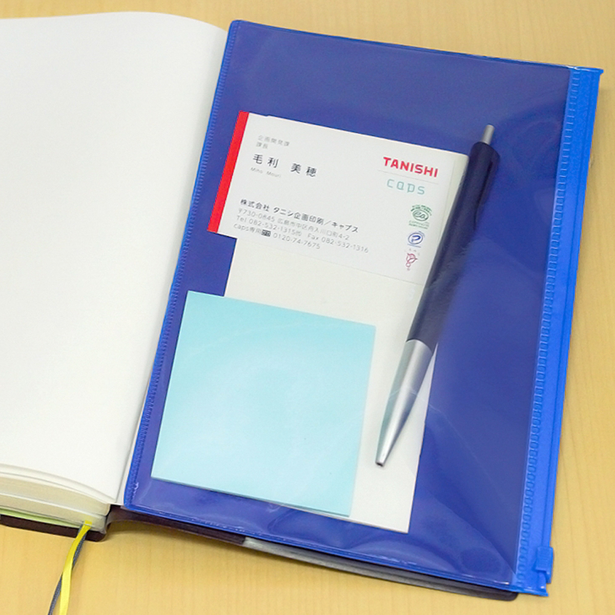 ケア手帳のカバーに差し込んで使うファスナーポケットです。