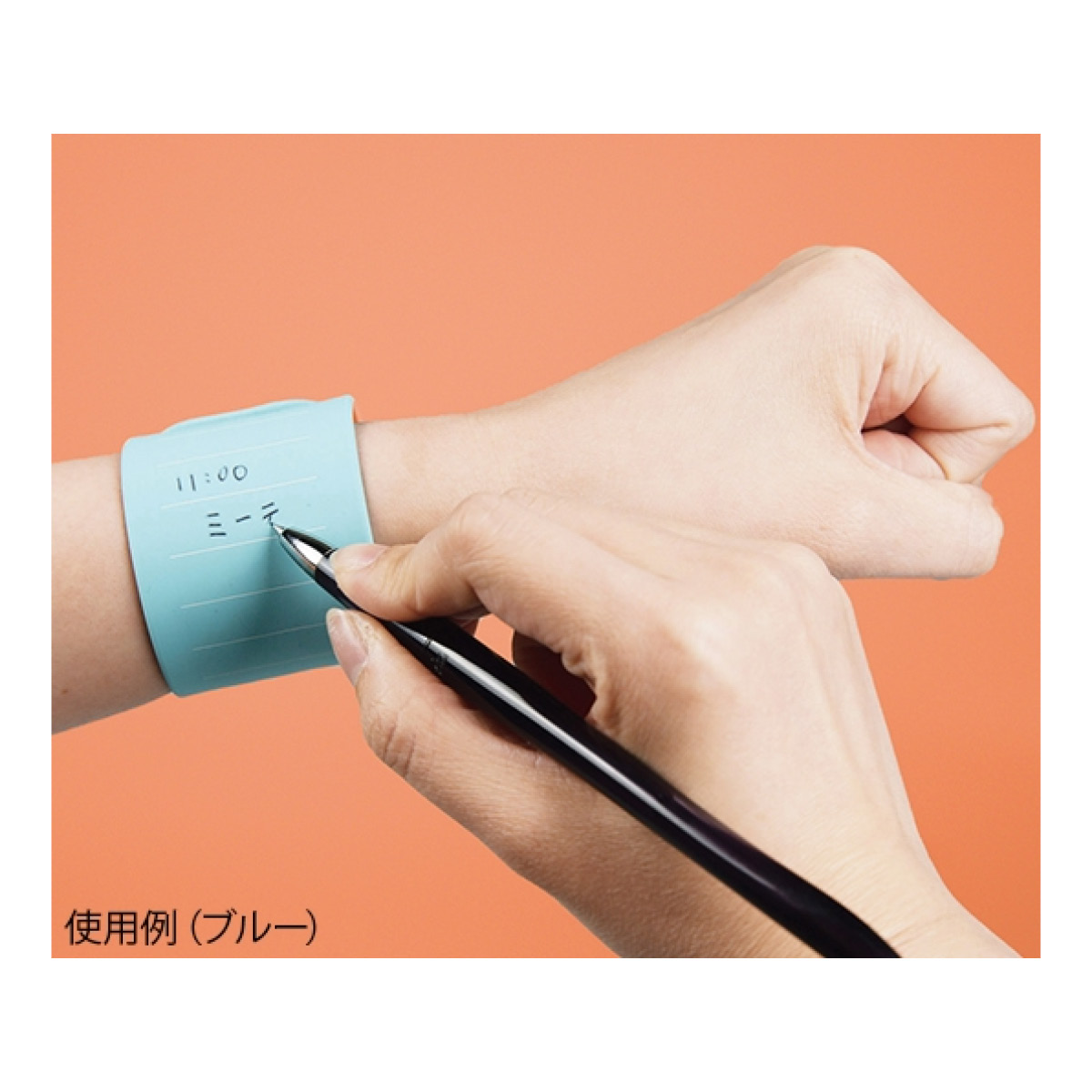 シリコンバンドに直接書け、指や消しゴムで擦って消すことができます。