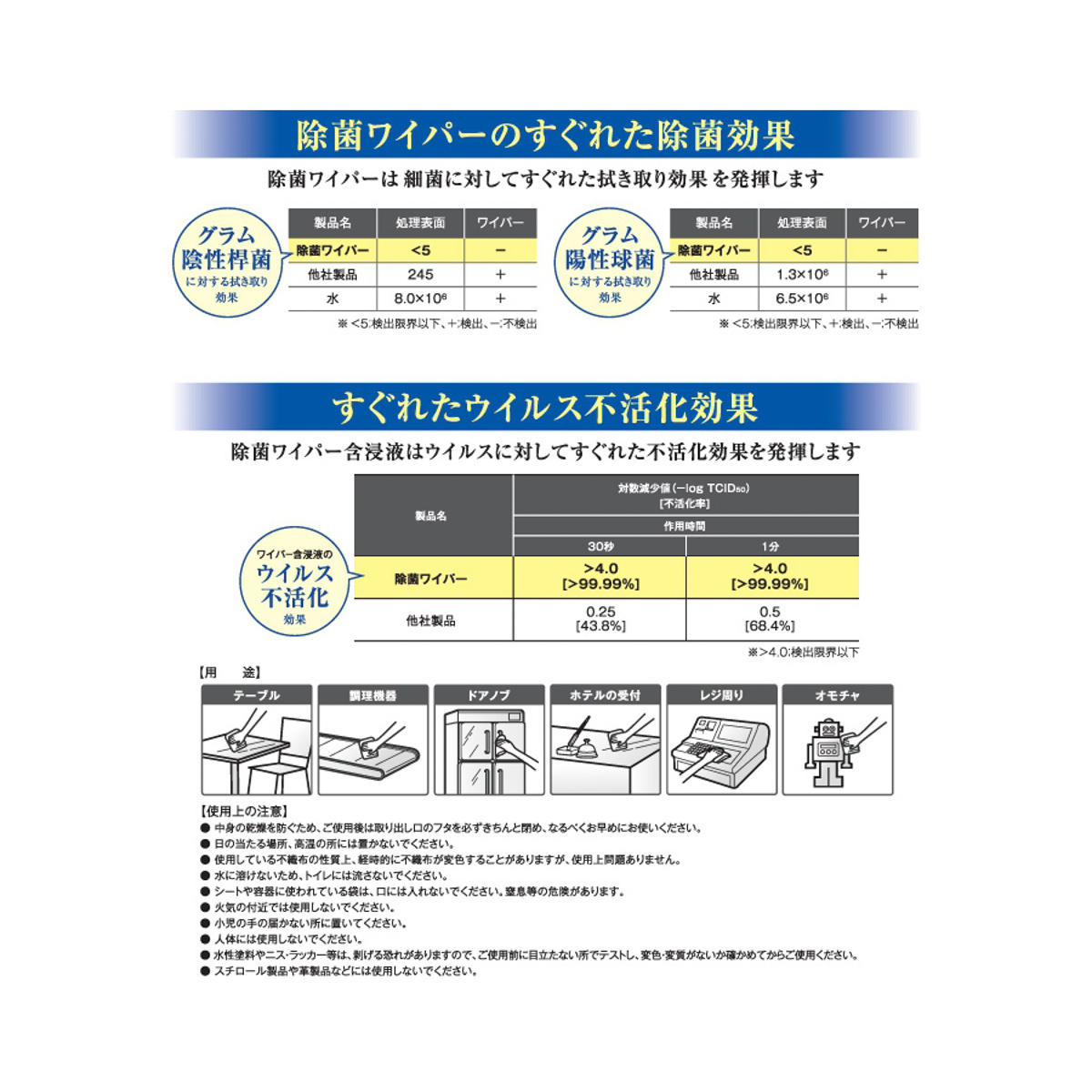 サッとひと拭きで清潔・除菌! 食品衛生にも最適の除菌ワイパーです。