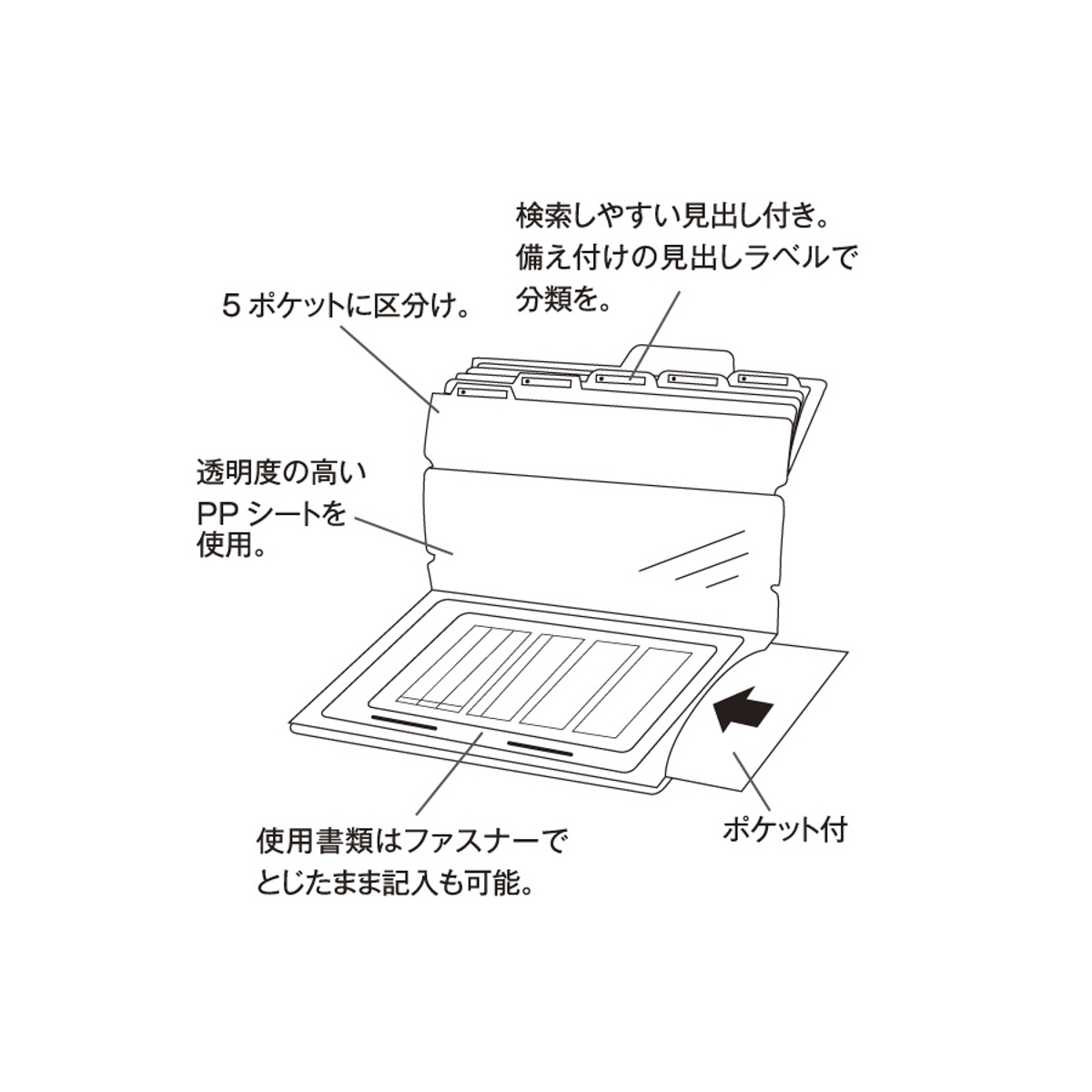 検索しやすい見出し付きで、備え付けの見出しラベルで分類できます。