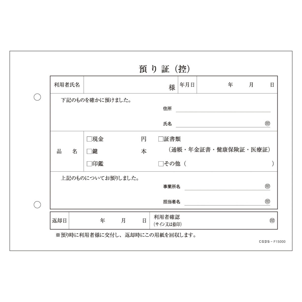 利用者様から貴重品を預かる場合、返却する場合にご利用下さい。