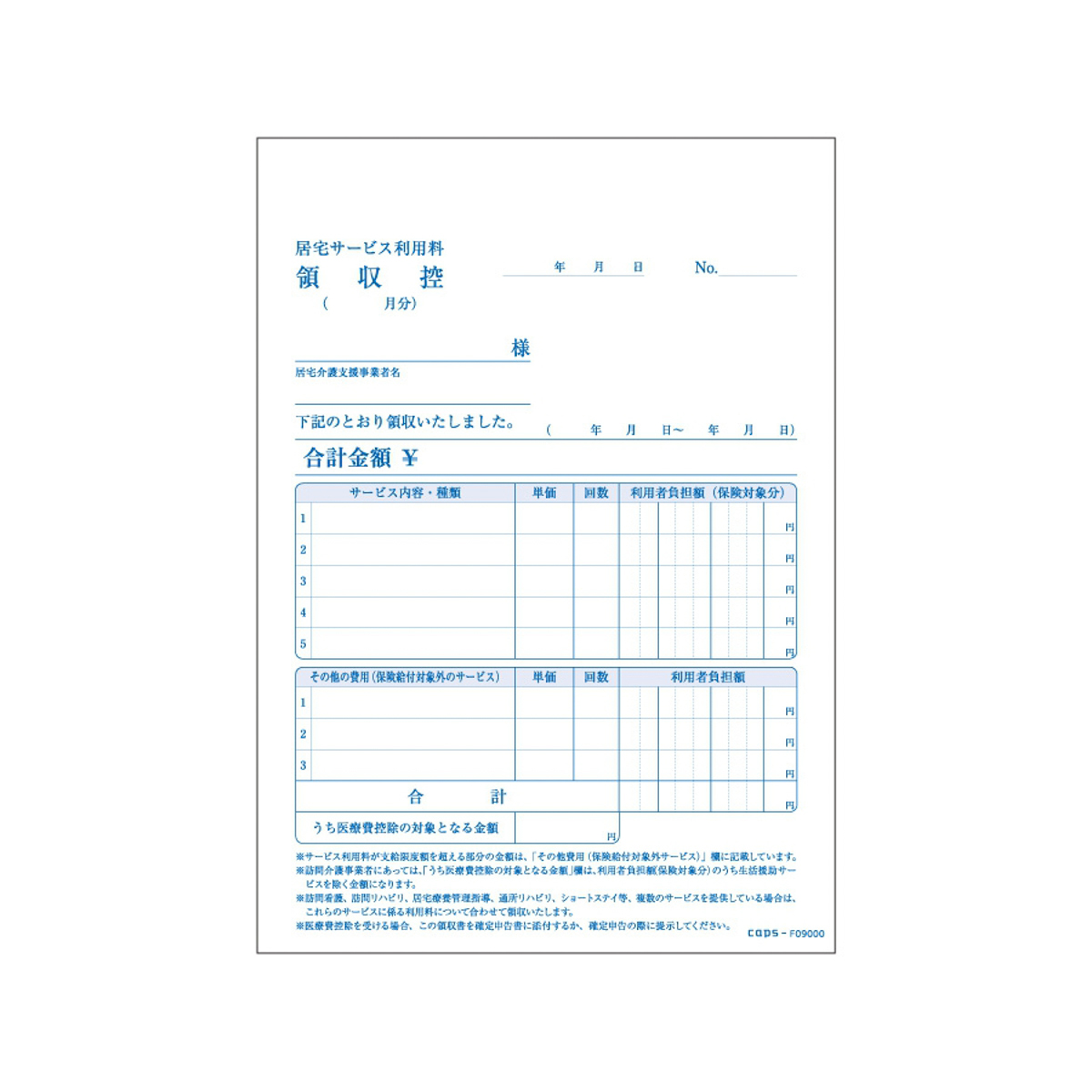 訪問・通所など各種居宅サービスで使用できる領収書です。