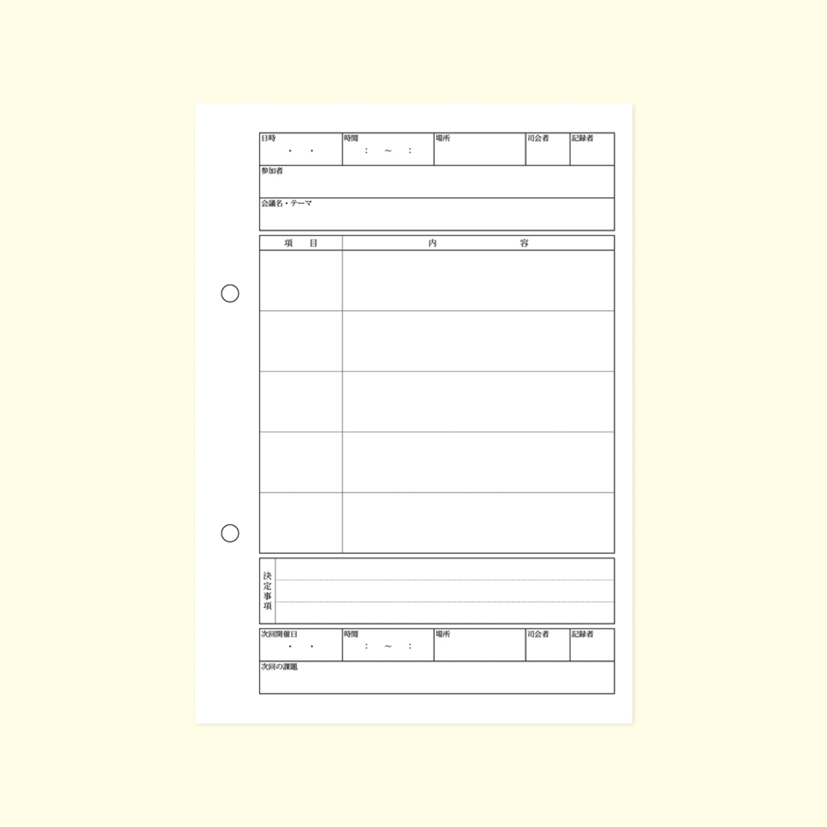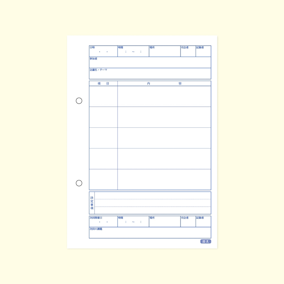 2枚ずつ切り離して使用する複写式の会議録です。