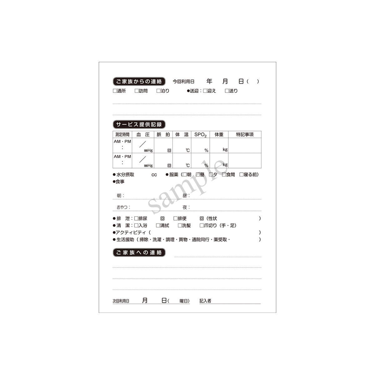 小規模多機能対応の連絡ノートです。