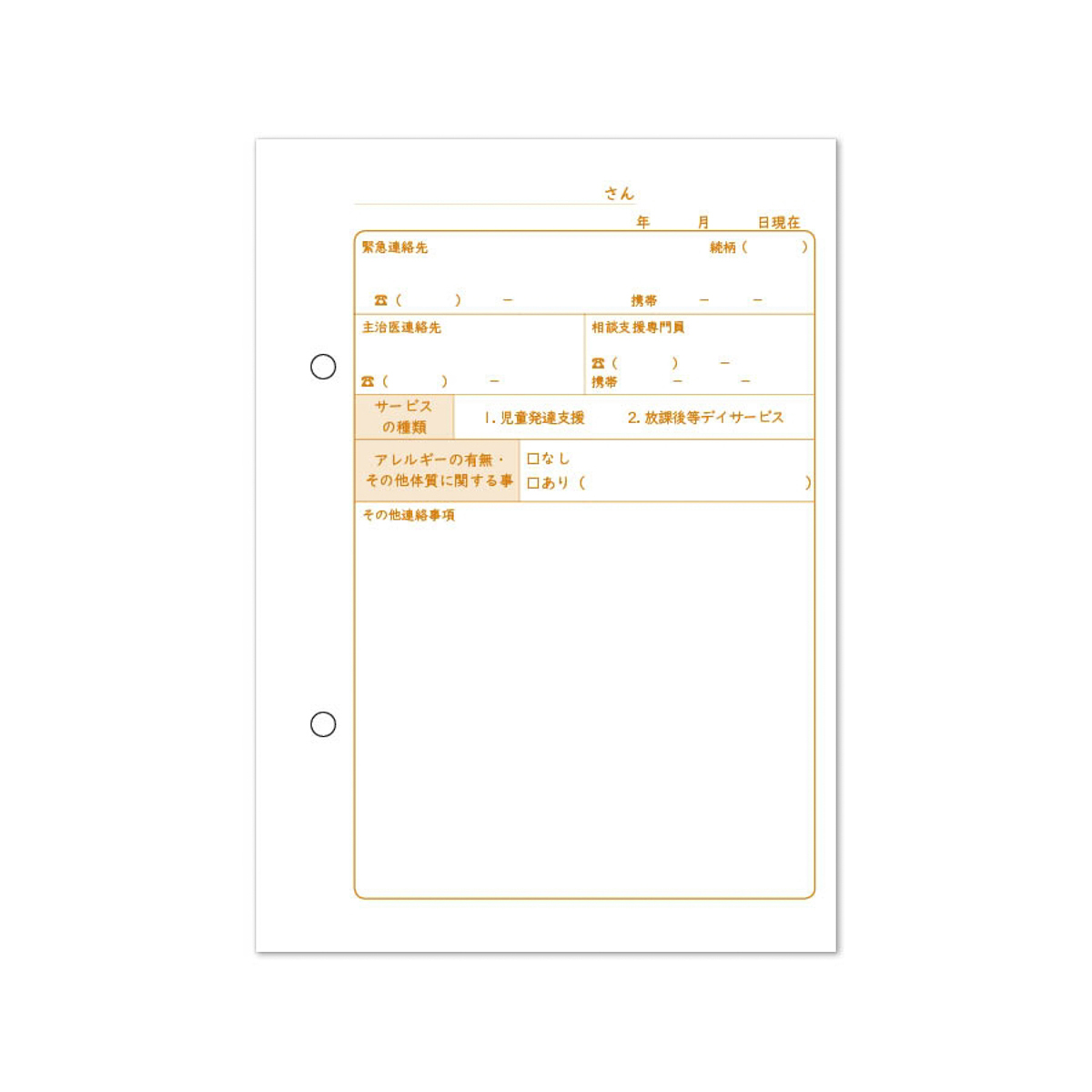 複写式ですので他の書類への転記が不要です。保護者控え、事業所控えの2枚複写仕様、B6版。