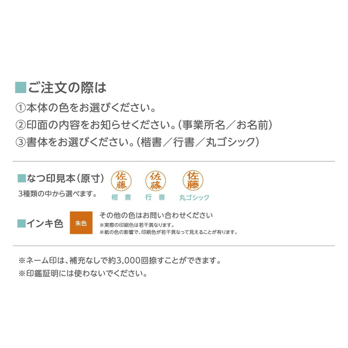 ネーム印は、インクの補充なしで約3,000回捺すことができます。
