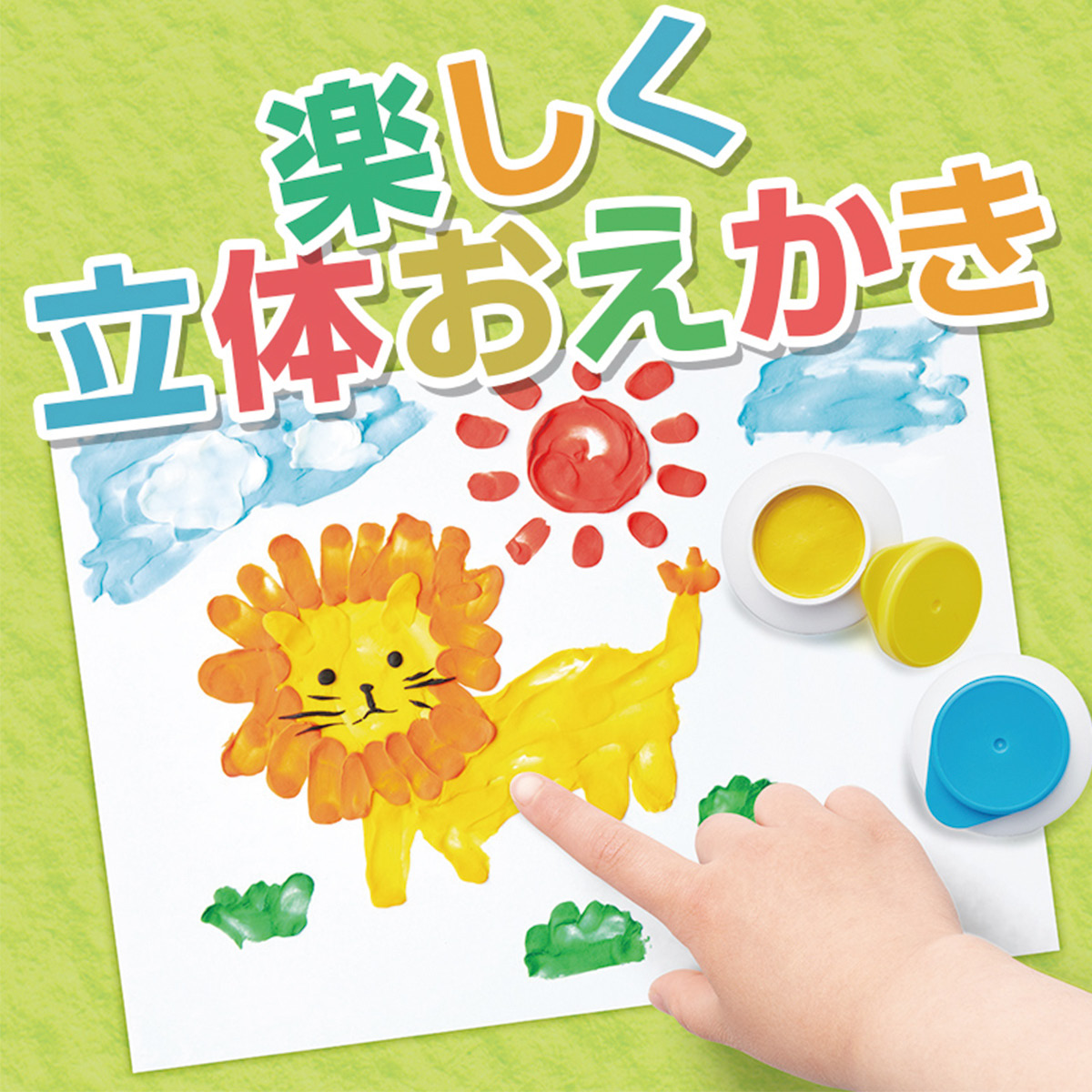 指で立体的な絵を描きながら、子供の色彩感覚も育まれる新感覚のえのぐ。