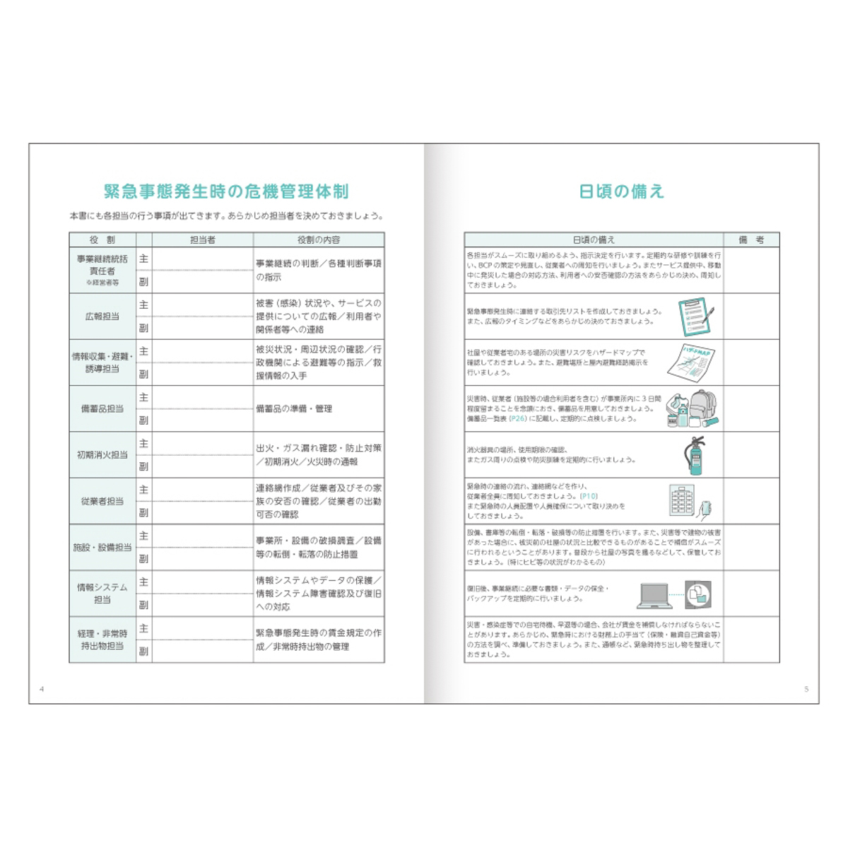 書き込み式で、事業所独自の「防災マニュアル」を従業員の皆さんと作ることができます。